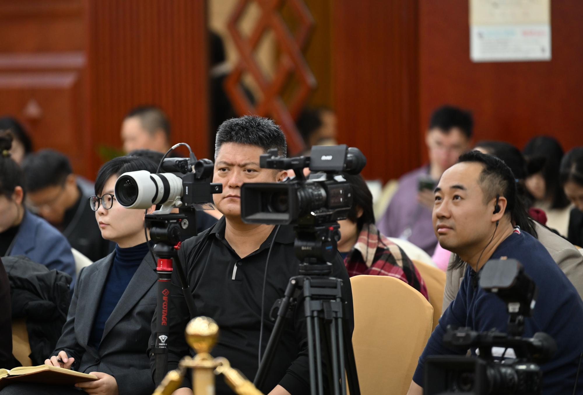 內(nèi)蒙古代表團開放團組活動現(xiàn)場,記者們架起“長槍短炮”,現(xiàn)場快門聲此起彼伏。草原云記者 馬建兵 攝