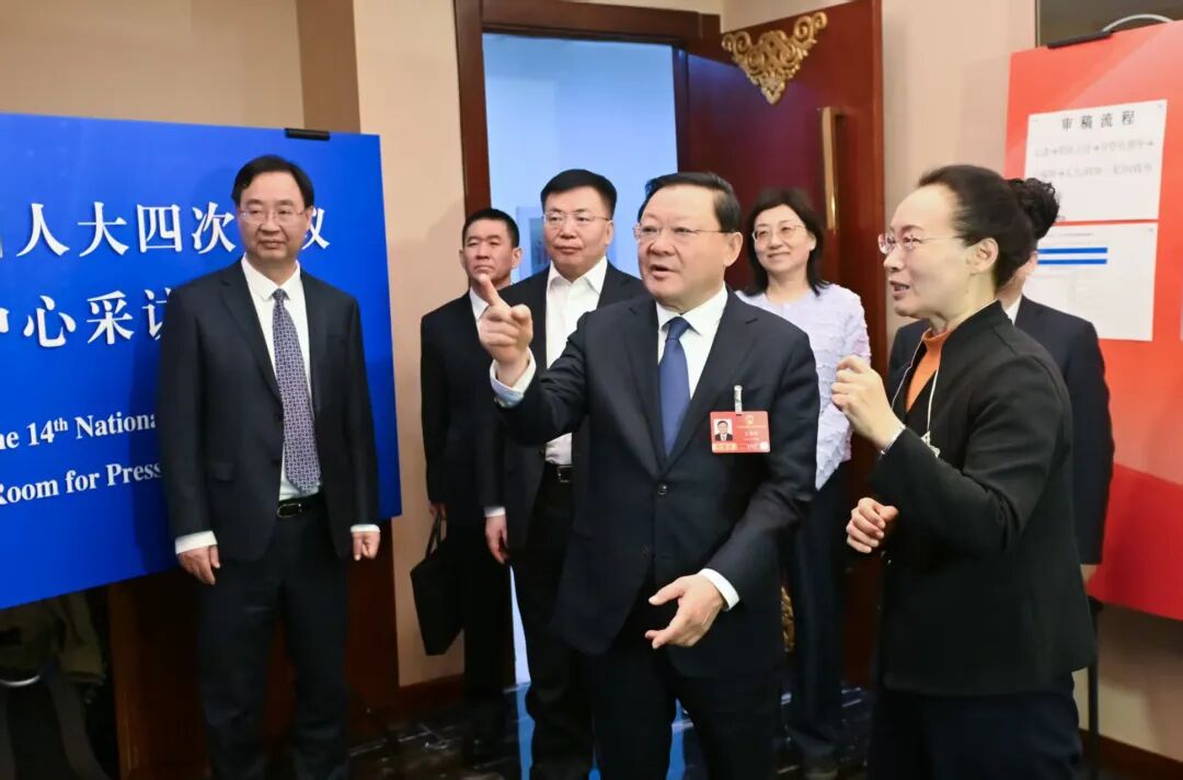 3月6日,自治區(qū)黨委書記、人大常委會主任王偉中,自治區(qū)黨委副書記、自治區(qū)人民政府主席包鋼在內(nèi)蒙古日報社兩會報道工作間與記者代表親切交流,詳細了解宣傳報道情況。草原云·內(nèi)蒙古新聞網(wǎng)記者 馬建兵 攝