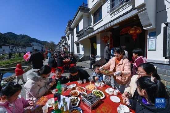 當(dāng)日,上千名游客來(lái)到浙江省建德市蓮花鎮(zhèn)戴家新村民宿一條街,參加鄉(xiāng)村特色百家宴,感受新農(nóng)村“舌尖上的幸?!?。本次鄉(xiāng)村百家宴也標(biāo)志著2023建德市蓮花鎮(zhèn)鄉(xiāng)村民俗旅游文化節(jié)正式開(kāi)啟。