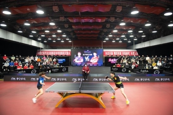 2月23日,中國乒乓球隊德班世乒賽選拔賽女單決賽中,孫穎莎(右)戰(zhàn)勝陳幸同奪冠。新華社記者 陳鐘昊 攝