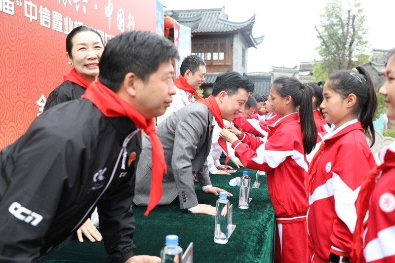 學(xué)生為嘉賓佩戴紅領(lǐng)巾。人民網(wǎng)記者 李乃妍攝
