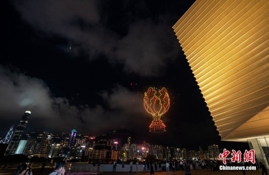 2000架無(wú)人機(jī)燈光創(chuàng)意秀點(diǎn)亮香港端午夜