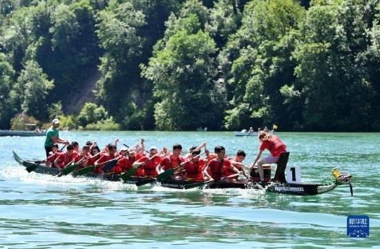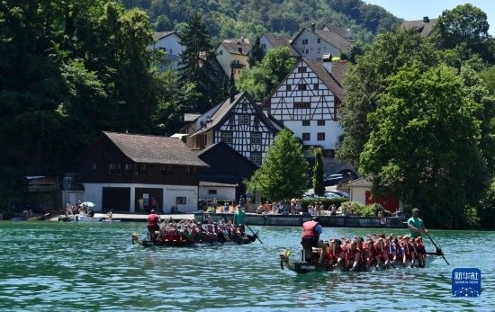 6月25日,在瑞士埃格利紹,人們參加賽龍舟活動(dòng)。