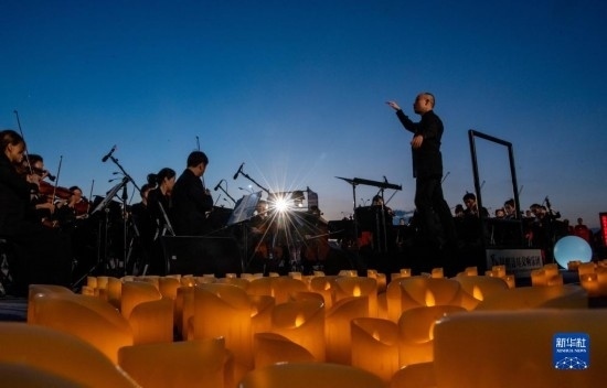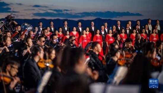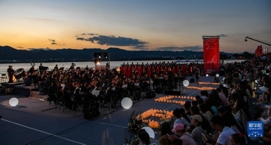 伴著晚霞,第七屆聶耳音樂周昆明分會(huì)場(chǎng)開幕式在滇池畔舉行(7月17日攝)。
