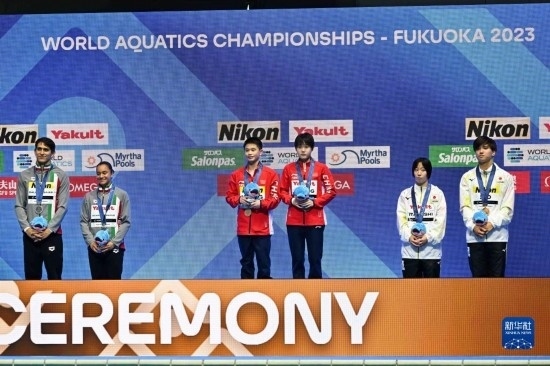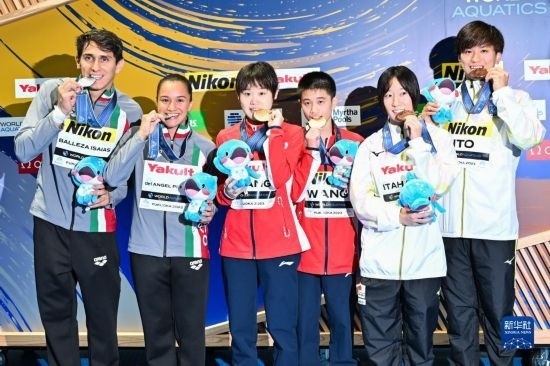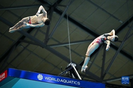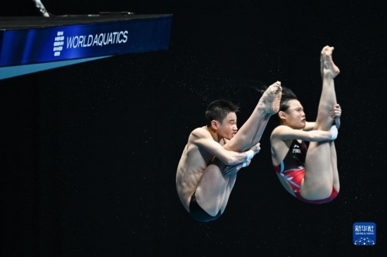 當(dāng)日,在2023年福岡世界游泳錦標(biāo)賽跳水混雙10米臺(tái)決賽中,中國組合王飛龍/張家齊以總分339.54分的成績奪得冠軍。