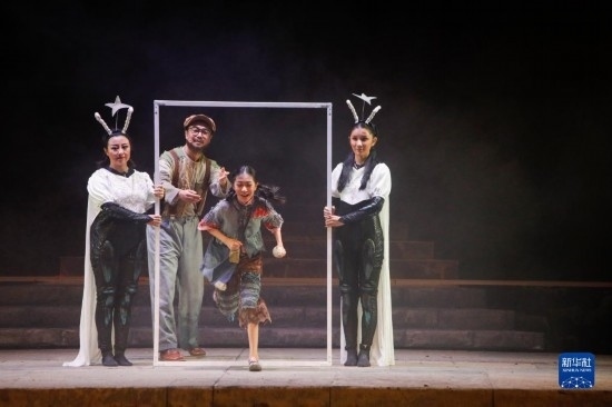 8月29日晚,演員在蘭州音樂(lè)廳表演新版紅色兒童劇《大豆謠》。