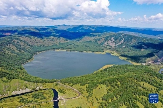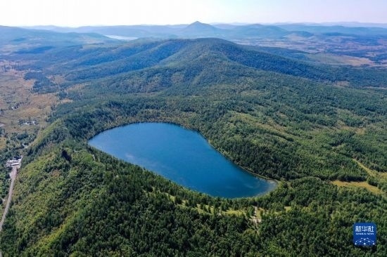 這是8月31日拍攝的阿爾山國家森林公園阿爾山天池景色(無人機照片)。