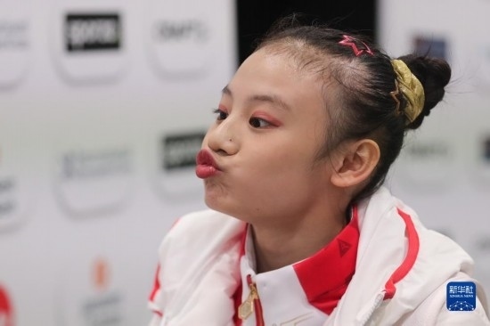 10月2日,中國選手邱祺緣在平衡木比賽后。新華社記者 鄭煥松 攝