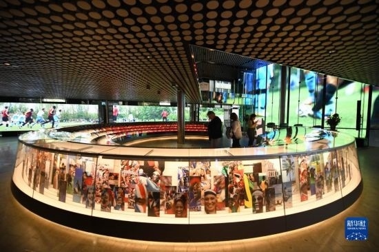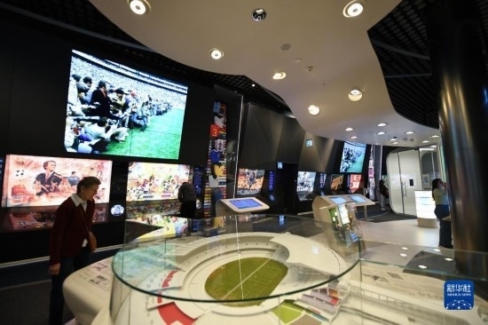 10月12日,在瑞士蘇黎世,人們參觀國際足聯博物館。新華社記者 連漪 攝