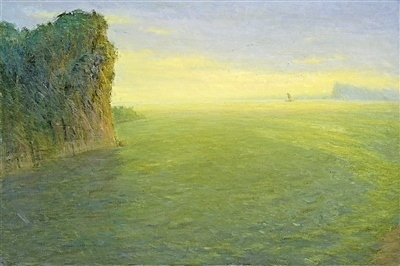 縱觀長江主題美術(shù)作品會(huì)發(fā)現(xiàn),古代繪畫更強(qiáng)調(diào)通過邈遠(yuǎn)宏闊的山河意象表達(dá)對(duì)“天人合一”審美境界的追求,而當(dāng)代美術(shù)作品則重在呈現(xiàn)更為豐厚的長江文化內(nèi)涵。蘊(yùn)含于民俗風(fēng)物中的厚重歷史、鮮活的生命情態(tài),在長江主題美術(shù)作品中煥發(fā)動(dòng)人光彩。在中國國家畫院主辦的“守護(hù)好一江碧水”長江主題美術(shù)作品展中,于文江中國畫《滕王閣》以長江四大名樓之一入畫,運(yùn)用傳統(tǒng)界畫形式,使歷史文脈跨越時(shí)空,在當(dāng)代畫卷中延續(xù)。透過畫面,觀眾不難感受到藝術(shù)家在景觀塑造中傳遞出的濃郁人文情懷與豐富文化想象。文化如水,水脈亦如文脈。長江的豐厚人文底蘊(yùn)在美術(shù)作品中熠熠生輝。像方土中國畫《長江文明之源·三星堆》、李學(xué)峰油畫《良渚文明》等作品,通過多元視角和藝術(shù)語言尋古探源,揭示長江文化的獨(dú)特內(nèi)涵。這些創(chuàng)作表明,凸顯美術(shù)作品的“地域性”不僅僅在于呈現(xiàn)自然之景,更重要的是表現(xiàn)在特定空間中生發(fā)出的人文精神。