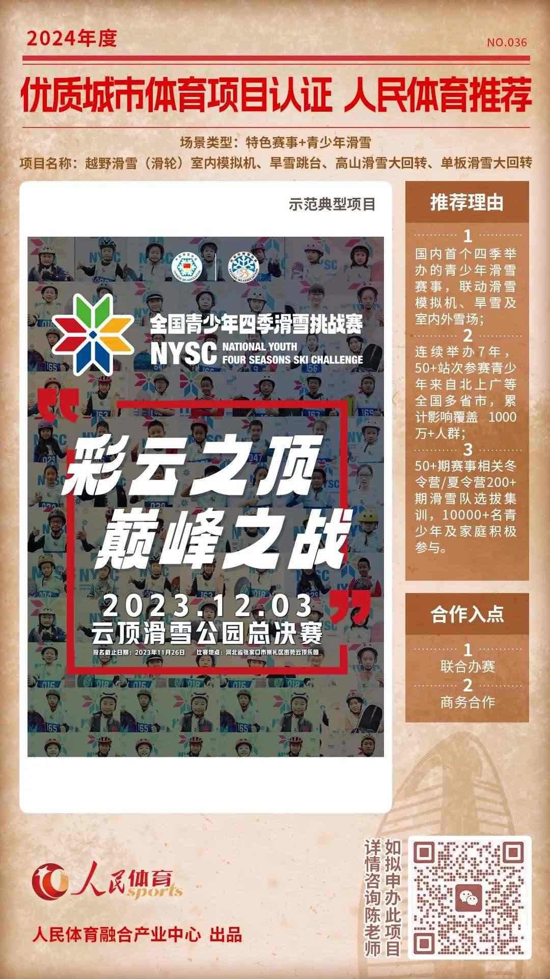 人民體育發(fā)起的“優(yōu)質(zhì)體育賽事及活動(dòng)認(rèn)證推薦計(jì)劃”,于2024年01月推出第四批共9個(gè)推薦項(xiàng)目,本期推薦首次推出單個(gè)項(xiàng)目深度介紹欄目。同時(shí),第五期推薦項(xiàng)目征集開(kāi)啟中。