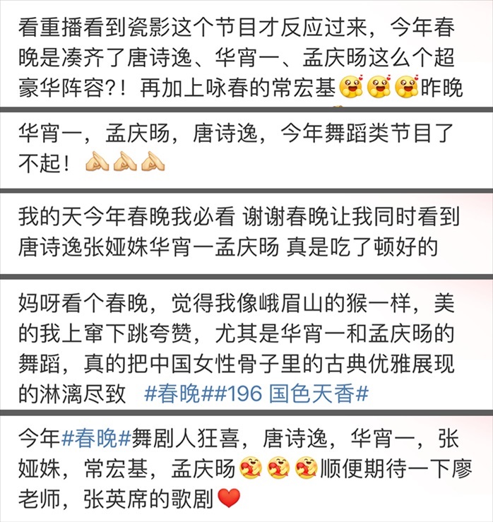 舞蹈迷們發(fā)現(xiàn),今年的春晚舞蹈節(jié)目配置太高,能聚起如此眾多現(xiàn)役頂尖舞蹈家的,也就只有春晚的舞臺(tái)了。但舞蹈節(jié)目的成功除了有頂尖舞者的才華,最重要的,還有創(chuàng)作者的誠懇。