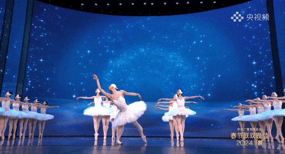 在舞蹈的后半部,來自上海芭蕾舞團(tuán)的演員們?cè)佻F(xiàn)了真正的《天鵝湖》,當(dāng)呆萌碰撞優(yōu)雅,一出丑小鴨與白天鵝的故事妙趣橫生。盡管這些專業(yè)的芭蕾舞演員已經(jīng)演繹了數(shù)百場(chǎng)《天鵝湖》,但在春晚的舞臺(tái)上依然有新的挑戰(zhàn)。比如在升降臺(tái)上以足尖起舞,演員就需要克服對(duì)高度的恐懼。
