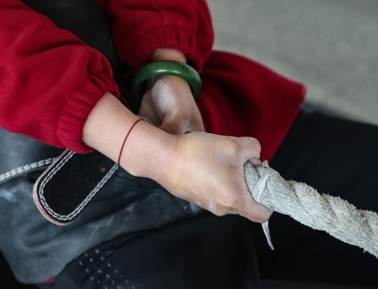 長期的訓(xùn)練,讓她們每個人的手掌都經(jīng)歷過從磨出血泡到反復(fù)脫皮的循環(huán),曾經(jīng)細(xì)嫩的雙手長滿了老繭。就連訓(xùn)練用的麻繩上,都留有被汗水和血水浸漬的痕跡。