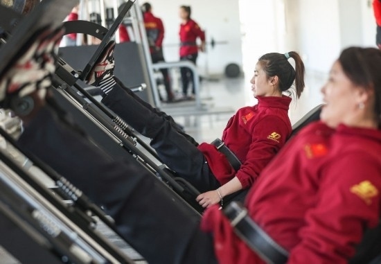 2月29日,鞍鋼集團(tuán)女子拔河隊隊員李夢梅在進(jìn)行力量訓(xùn)練。新華社記者 龍雷 攝