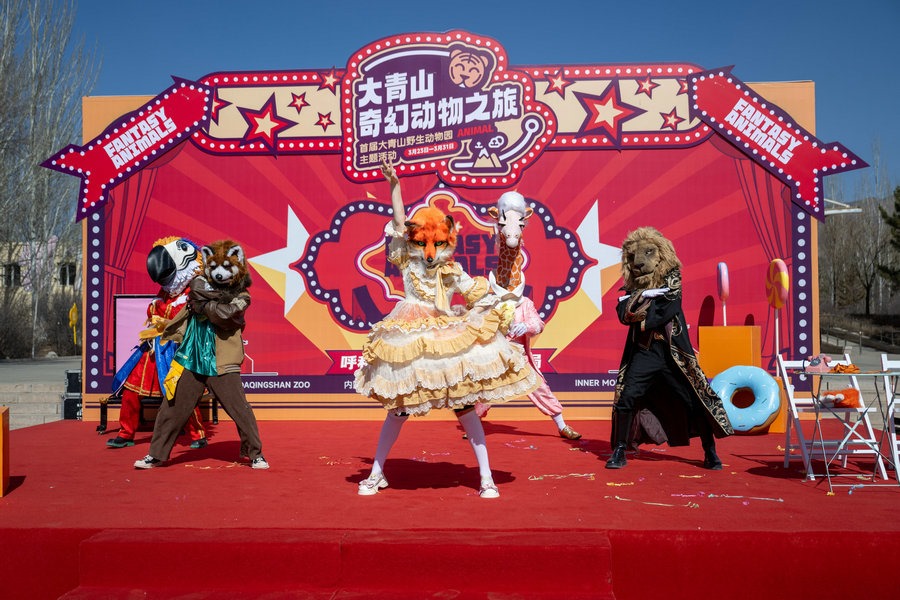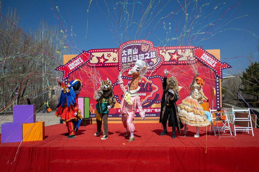 3月22日上午,在內(nèi)蒙古呼和浩特大青山野生動(dòng)物園里,5只動(dòng)物人偶正在為23日舉行的國內(nèi)大型動(dòng)物主題互動(dòng)巡游偶劇《奇幻動(dòng)物城》彩排。