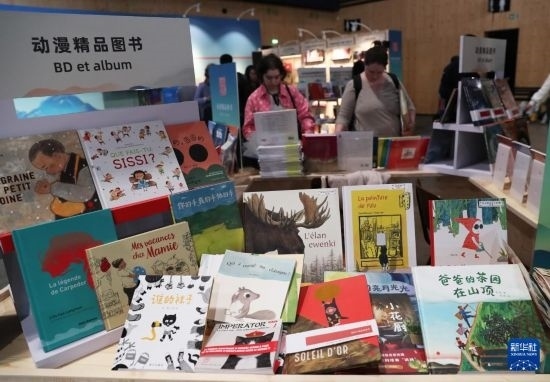 這是4月12日在法國(guó)巴黎臨時(shí)大皇宮舉行的2024巴黎書展上拍攝的中國(guó)圖書。