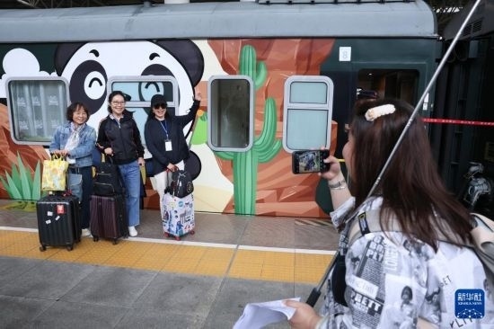 當日,一列搭載200余名游客的Y477次“多彩貴州號”貴陽——西雙版納——老撾“熊貓專列”從貴陽火車站正式啟程,開啟老撾異域風情游。據(jù)介紹,“熊貓專列”是由中國鐵路成都局集團有限公司運營的旅游列車,以熊貓為設(shè)計主題,通過多種形式展示地域文化與民族特色。