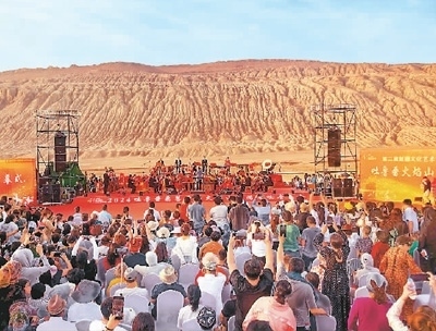 游客在新疆吐魯番火焰山下欣賞交響音樂會。 劉 健攝(人民圖片)