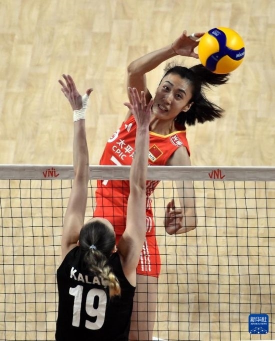 當日,在世界女排聯(lián)賽中國香港站比賽中,中國隊3比2戰(zhàn)勝土耳其隊。
