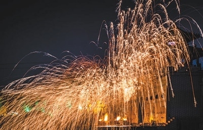 碎炭、起火、熔鐵、揚(yáng)水、打花……夜晚,在河南開封清明上河園景區(qū),一場流光溢彩的“打鐵花”民俗文化表演正在上演(見圖,受訪者供圖)。隨著1600攝氏度的鐵水在夜空中幻化成漫天的“星光”,絢爛、璀璨,瞬間驚艷全場,現(xiàn)場觀眾由衷發(fā)出陣陣驚嘆。而這一巧奪天工的“重金屬藝術(shù)”正是開封打鐵花第二十二代傳承人劉小松及其團(tuán)隊的作品。