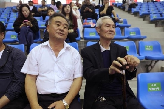 拄著拐杖,邁著略顯蹣跚的步伐,81歲的李順在兒子李德文的幫助下,來到看臺坐下來。當(dāng)被問到喜歡哪支隊時,老漢憨憨一笑說:“都喜歡著呢,這些娃打得都好。”