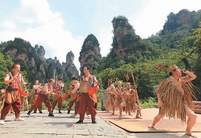 “鈸、鑼、嗩吶、鼓,多種樂(lè)器合奏,在峰林下演繹著美妙的樂(lè)章……”近日,湖南省張家界國(guó)家森林公園里,以“三千奇峰,共生共長(zhǎng)”為主題的首屆森林非遺藝術(shù)季開(kāi)幕。當(dāng)?shù)厣贁?shù)民族群眾盛裝巡游,翩翩起舞。中外游客在欣賞張家界地貌絕美峰林的同時(shí),體驗(yàn)多彩的民俗文化盛宴。