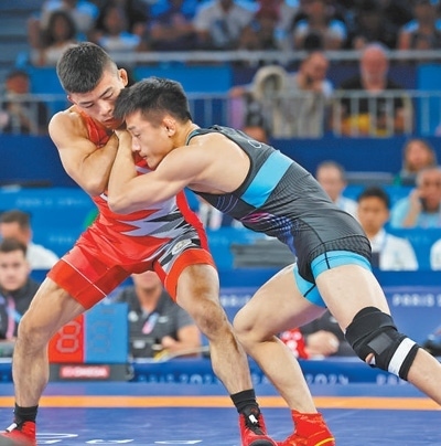 作為2023年摔跤世錦賽該級(jí)別銅牌得主,“站上領(lǐng)獎(jiǎng)臺(tái)”是曹利國(guó)在巴黎奧運(yùn)會(huì)的目標(biāo)。雖然他在首場(chǎng)比賽中有些緊張,但還是以6∶2戰(zhàn)勝埃及隊(duì)選手穆阿蒙·穆罕默德。在1/4決賽中,他表現(xiàn)得更加自如,以5∶3戰(zhàn)勝委內(nèi)瑞拉隊(duì)選手羅德里格斯·奧羅斯科。半決賽曹利國(guó)對(duì)陣朝鮮隊(duì)選手李世雄,他在1∶3落后的情況下,最后時(shí)刻憑借邊界一記提抱摔將比分追至3∶3,憑借后得分取勝。