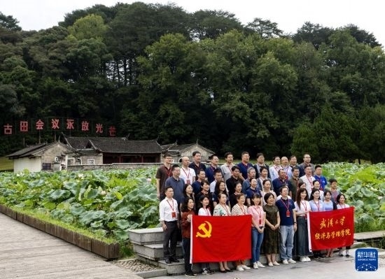 8月29日,來自武漢大學(xué)經(jīng)濟(jì)與管理學(xué)院的培訓(xùn)團(tuán)隊(duì)在古田會議會址前合影。