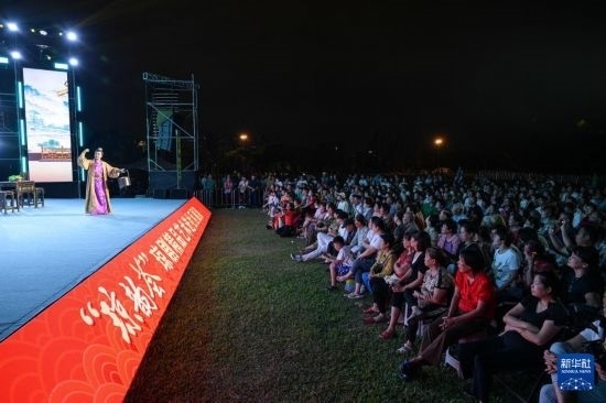 10月6日在??谑腥f(wàn)綠園拍攝的“瓊韻薈”瓊劇精品藝術(shù)進(jìn)社區(qū)展演現(xiàn)場(chǎng)。