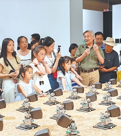 “第十四屆全國(guó)美術(shù)作品展覽實(shí)驗(yàn)藝術(shù)、數(shù)字藝術(shù)與動(dòng)畫作品展”專家導(dǎo)賞現(xiàn)場(chǎng)。中國(guó)美術(shù)家協(xié)會(huì)供圖