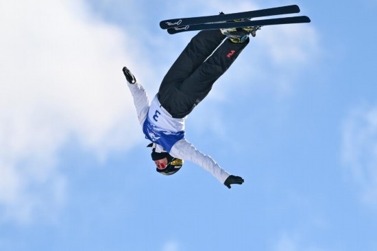 2月9日,李心鵬在落地時(shí)發(fā)生失誤。新華社記者 夏一方 攝