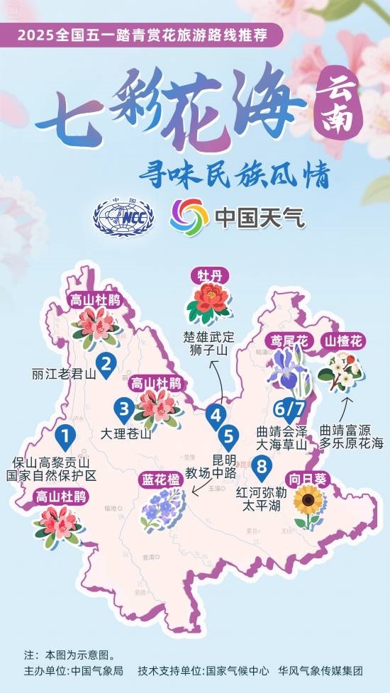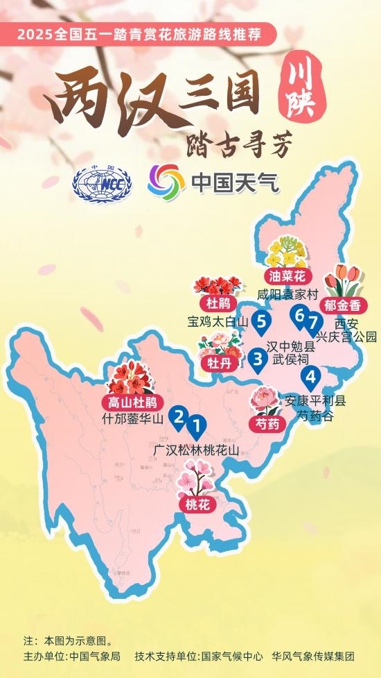 4月23日,中國(guó)氣象局參與文化和旅游部2025年全國(guó)“五一”文化和旅游消費(fèi)周活動(dòng),推出12條 “五一踏青賞花旅游路線”。每一條路線,都串聯(lián)起春日里最動(dòng)人的景致。在即將到來的五一假期,不妨從這些路線中挑選你心儀的一條,趁著春光正好,開啟一場(chǎng)與春日中國(guó)的浪漫邂逅。