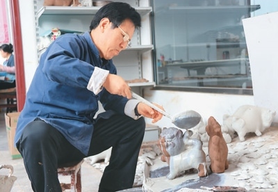 前些年,胡新明大膽嘗試,在泥里加入紙漿、棉花、面糊、糯米汁等,反復(fù)試驗(yàn),研制出“摔不爛”的泥塑;創(chuàng)新泥塑造型,讓各類產(chǎn)品推陳出新。