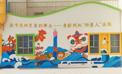 清晨,太陽(yáng)剛剛升起,新疆伽師縣西克爾庫(kù)勒鎮(zhèn)中心幼兒園內(nèi),一群背著畫板、提著顏料箱的年輕人已開始忙碌。剛翻新的幼兒園墻面成為他們的畫布,大海與雪山、醒獅與烤馕、廣州塔與喀什高臺(tái)民居等粵新兩地文化元素在此相遇。百人共繪的畫卷(局部見圖),不僅點(diǎn)亮邊疆孩子們的藝術(shù)星空,也滋潤(rùn)著共創(chuàng)者的心靈。