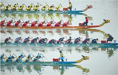 “比賽項目很豐富,有200米、500米直道賽以及搶紅奪標賽,今年還新設(shè)了龍舟拔河?!惫ふf,傳統(tǒng)的龍舟一般坐22個人,現(xiàn)在比賽用的小龍舟通常坐12個人。
