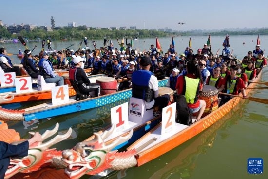 當(dāng)日,2025年“民族團(tuán)結(jié)杯”寧夏端午龍舟邀請(qǐng)賽在銀川市海寶公園舉行。來自寧夏全區(qū)的19支代表隊(duì)參加比賽,用龍舟賽的方式共度端午假期。