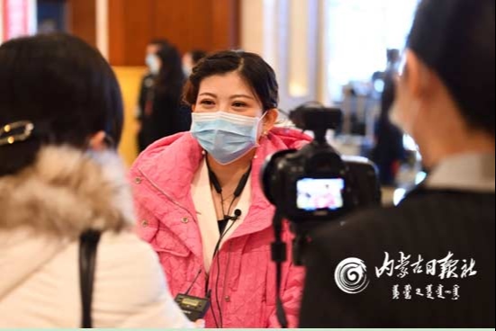 人大代表接受內(nèi)蒙古日?qǐng)?bào)社記者采訪(fǎng)。