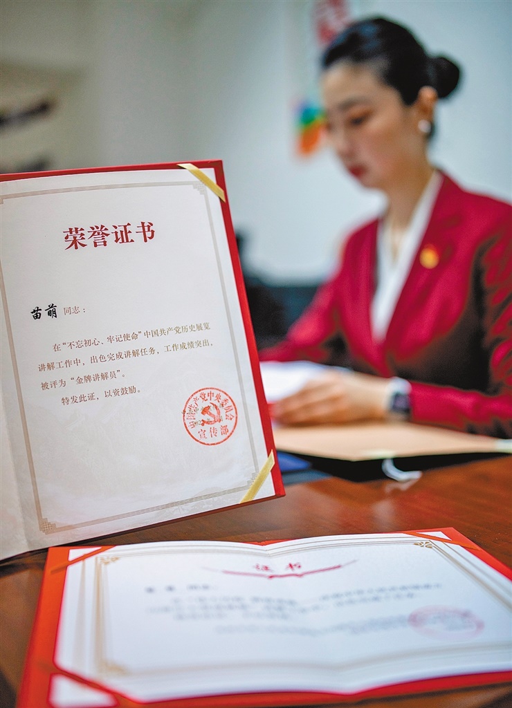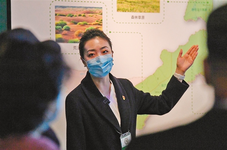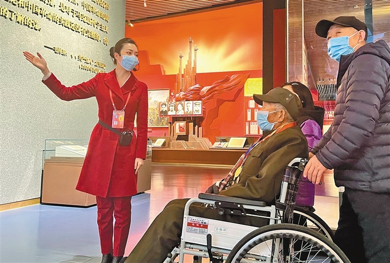 在中國(guó)共產(chǎn)黨歷史展覽館為觀眾講解?! ?/p>