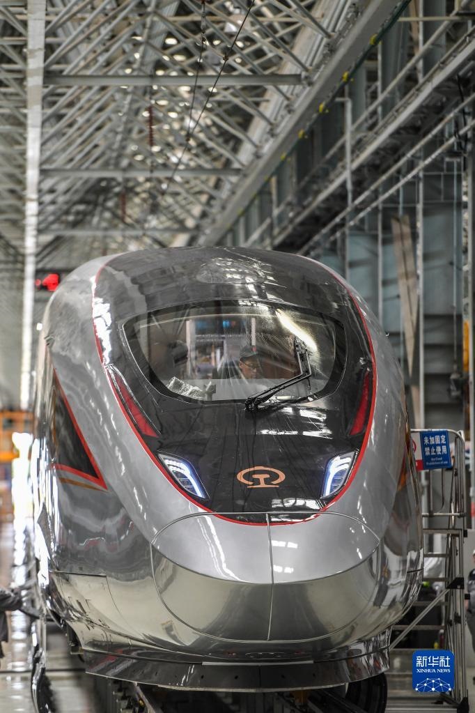 2021年6月15日在中車長客高速動車組制造中心拍攝的復興號智能動車組。新華社記者 張楠 攝