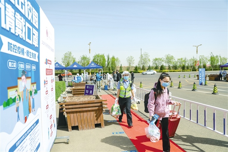當(dāng)日一早,內(nèi)蒙古師范大學(xué)盛樂(lè)校區(qū)的教職工按照疫情防控等有關(guān)部門的規(guī)定和要求,統(tǒng)一進(jìn)行接站、入校、消殺、掃碼等一系列程序,以保學(xué)生安全返校。