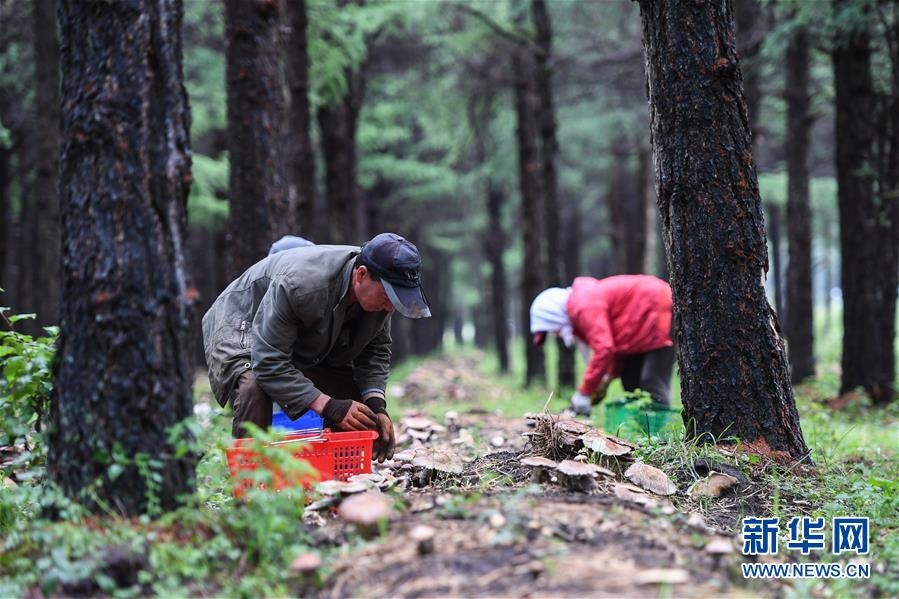 近日,內(nèi)蒙古克什克騰旗樺木溝林場的大球蓋菇長勢喜人,工人們在密林間忙著采摘。這是當?shù)亓謭雠c青島農(nóng)業(yè)大學于2018年起開始合作的食用菌林下種植試驗項目,目前這里的大球蓋菇畝產(chǎn)能達4000斤以上,還吸引了許多游客來體驗林中蘑菇采摘。今年,該試驗項目已經(jīng)小規(guī)模推廣到林場周邊鄉(xiāng)鎮(zhèn),林下種菌使老林區(qū)有了新活力,帶動了林區(qū)居民增收。新華社記者 劉磊 攝