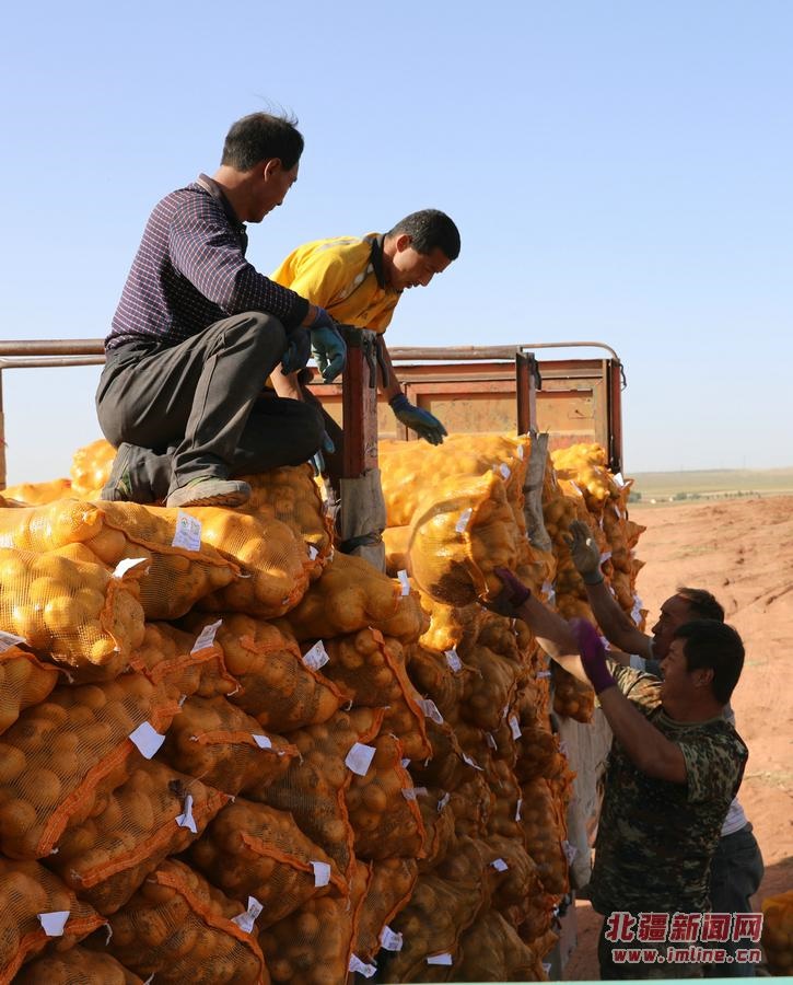 9月18日,呼和浩特市武川縣大魚(yú)得水溝村種植戶張永在和霍家溝村種植戶霍飛正在收獲土豆。